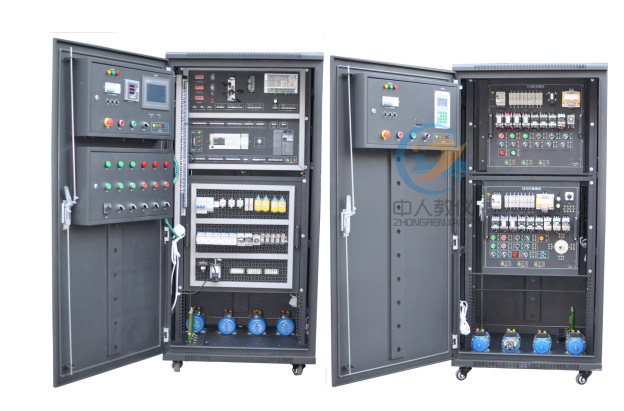 1.本裝置采用標準配電柜為主體柜,充分利用該柜雙面空間位置,其中裝有可方便拆卸的電源控制、交直流電源、測量儀表、低壓電氣器件,另一面裝有PLC模擬量模塊、變頻器、直流調(diào)速模塊、機床智能考核,該配電柜占地面積小,外形美觀;2.電氣控制線路元器件都裝在電氣柜內(nèi)部,配有布線槽、接線端子;通過端子學生可自行接線、布線,構(gòu)建控制系統(tǒng),實訓特點明顯,同時具有一定的擴展性;
